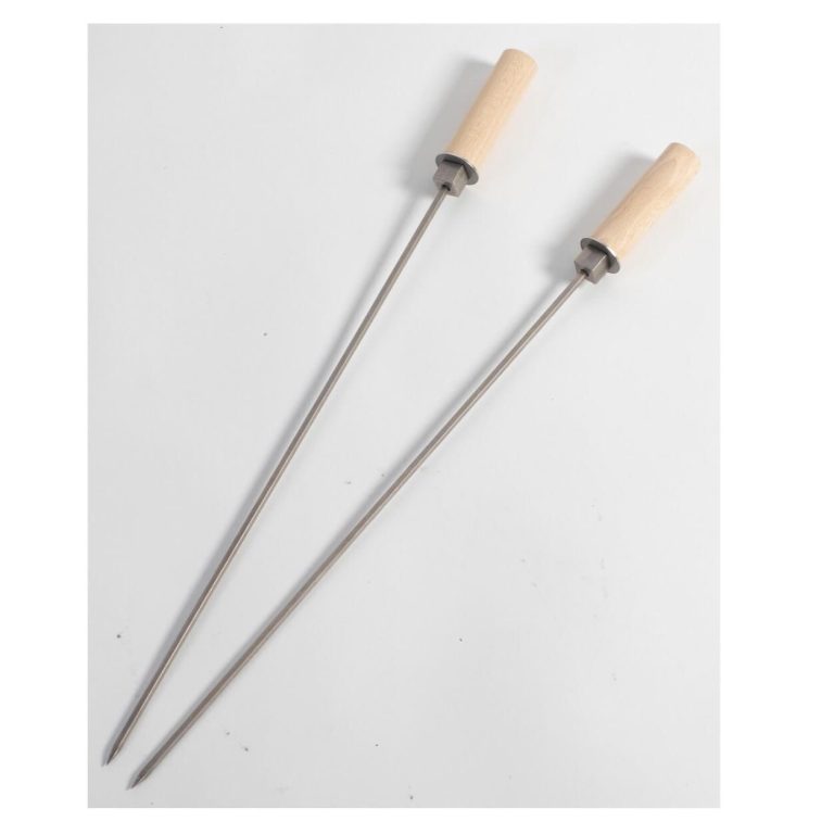 Die extra langen Grillspieße werden als 2er-Set geliefert und können auf den Aufsatz oder auf dem Feuerring platziert werden. Durch die speziell eingearbeitete Viereck-Kantung bleibt das Grillgut immer in der gewünschten Position.