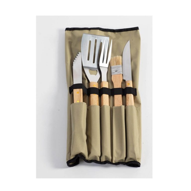 Das Multifire Grillwerkzeug Set besteht aus einer einfachen Grillzange und einer praktischen Spachtel. Zusätzlich erhalten Sie ein Messer, eine Grillgabel und einen Fleischpinsel. Geliefert wird das Grillwerkzeug Set in einem aufrollbaren Stoffbeutel.