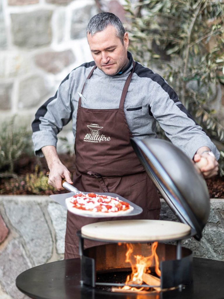 Der speziell für den Multifire angefertigte Schamottstein hat einen Durchmesser von 40 cm bei einer Materialstärke von 3 cm. Der Stein speichert die Hitze, gibt sie gleichmäßig an den Teig ab und sorgt somit für echten Steinofengeschmack!