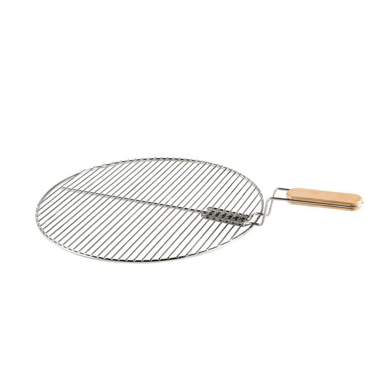 Der pflegeleichte und spülmaschinenfeste Edelstahl-Grillrost kann für das Grillen über offenem Feuer verwendet werden. Rost und Holzgriff sind zwei separate Bauteile. Der Durchmesser des Rostes beträgt 45 cm.